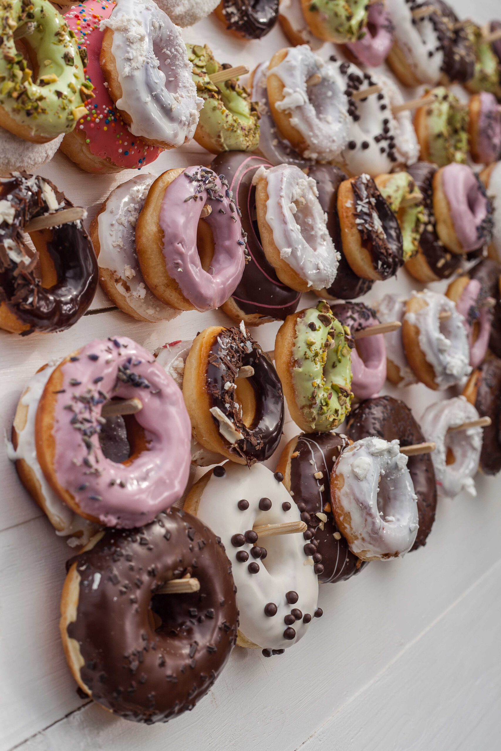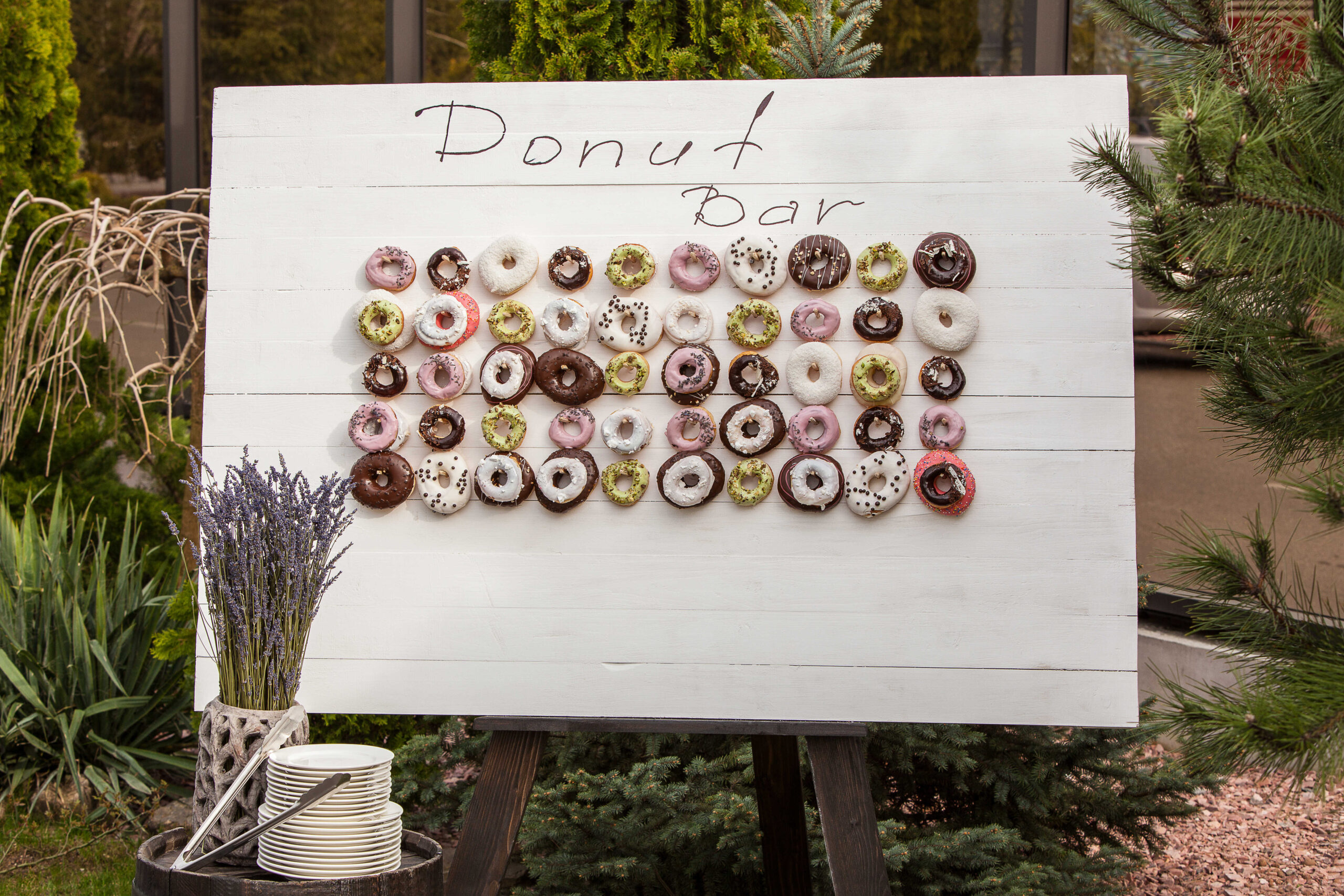 The station offers a wide variety of donuts with different fillings and toppings: classic chocolate and vanilla glazes, fruity jams, creamy fillings with fresh berries, caramel, crushed nuts, vibrant sprinkles, and even chocolate chunks