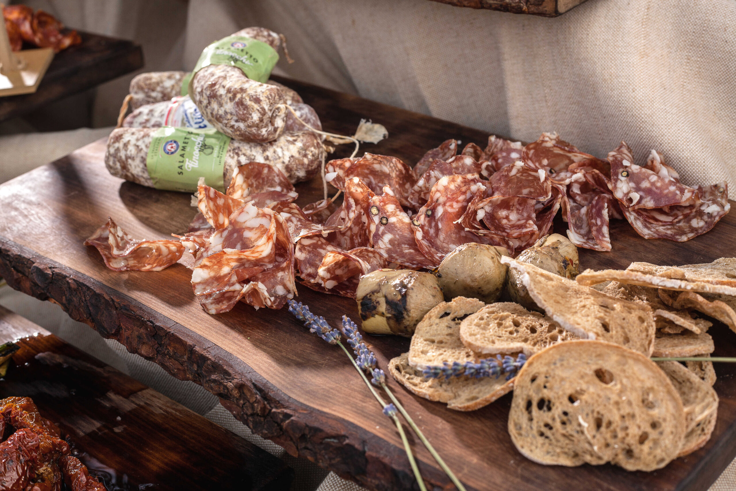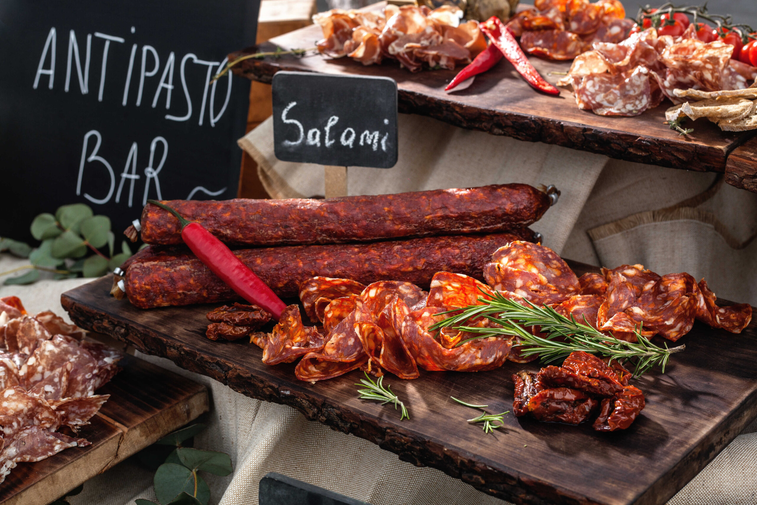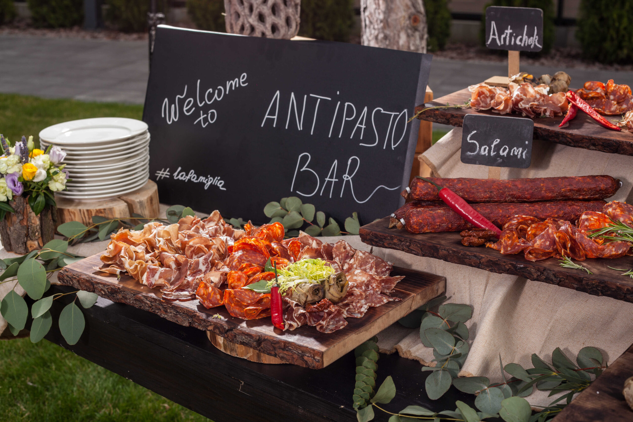 Antipasto is a sophisticated Italian appetizer that begins the meal by offering guests their first gastronomic experience. It traditionally includes a variety of delicacies: thinly sliced cured meats such as prosciutto, salami, and mortadella; aged and fresh cheeses like Parmesan, mozzarella, and Gorgonzola; marinated vegetables, olives, artichokes, and sun-dried tomatoes. Additionally, aromatic breads and crackers may be served to enhance the flavors of each component.