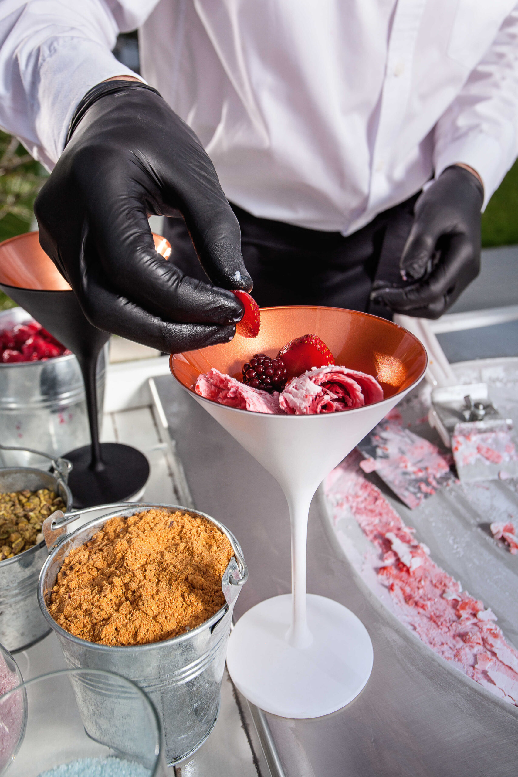 The Ice Roll Station is a magical space where each scoop of ice cream is crafted from the freshest, natural ingredients right before your eyes. The station transforms into a true flavor laboratory, showcasing every step of the process—from selecting and preparing ingredients to making and serving the ice cream.
