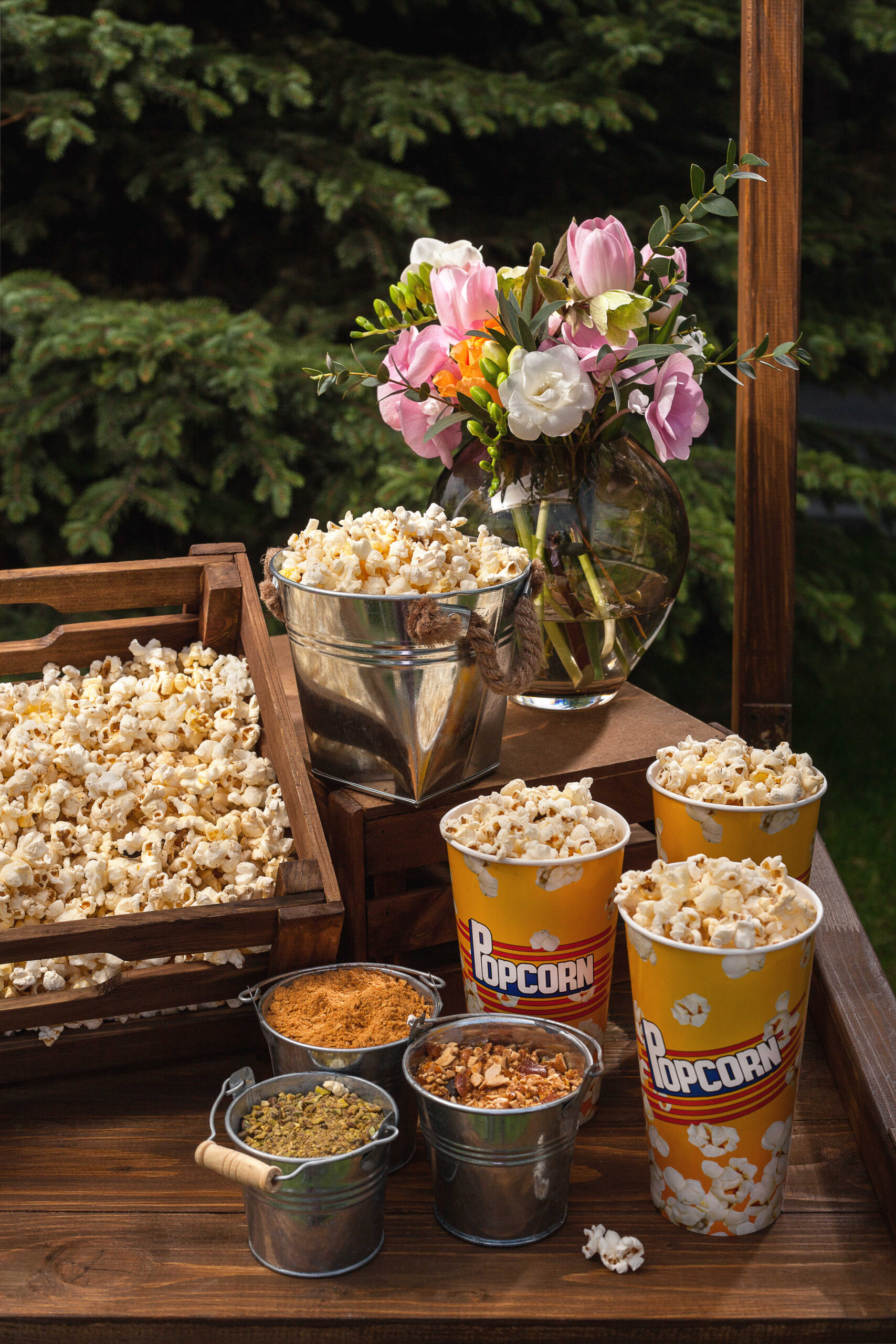 The Popcorn Station is a true celebration of flavor and aroma, where each kernel transforms into a crispy treat. The station captivates with its vibrant presentation and the irresistible scent of freshly popped popcorn that fills the air with sweet and savory notes. Here, every guest can indulge in a variety of flavor options for this beloved snack.