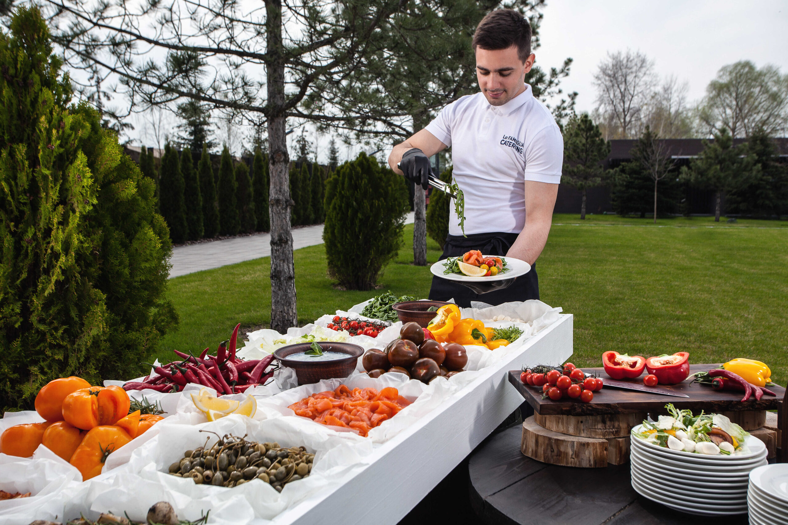 The BBQ Station is a culinary spectacle where the aromas of smoke and spices blend harmoniously to create unforgettable flavor experiences. Guests are greeted by a barbecue master who skillfully manages the heat and flames, transforming high-quality ingredients into true masterpieces. A variety of sauces and marinades are offered, ranging from classic barbecue to spicy chili and sweet honey mustard. Favorite sides are also included: baked beans, corn on the cob, potato wedges, and freshly baked rolls. For added enjoyment, fresh herbs and crisp salads complete the feast.