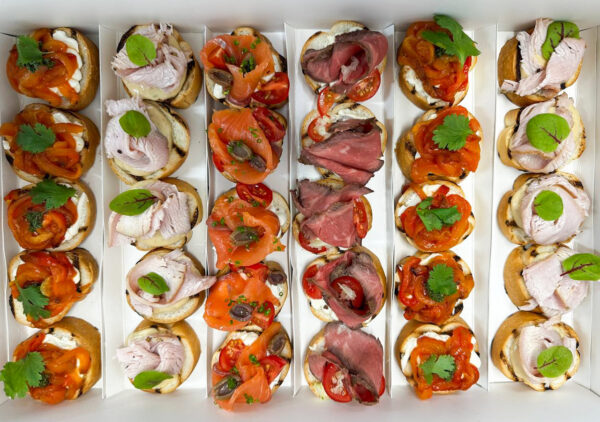 Міні-бріош бокс — витончене частування з преміальними начинками. У коробці: міні-бріоші з лососем, ростбіфом, пастрамі з індички, вершковим сиром та печеним перцем. Готові закуски з доставкою в Києві!
